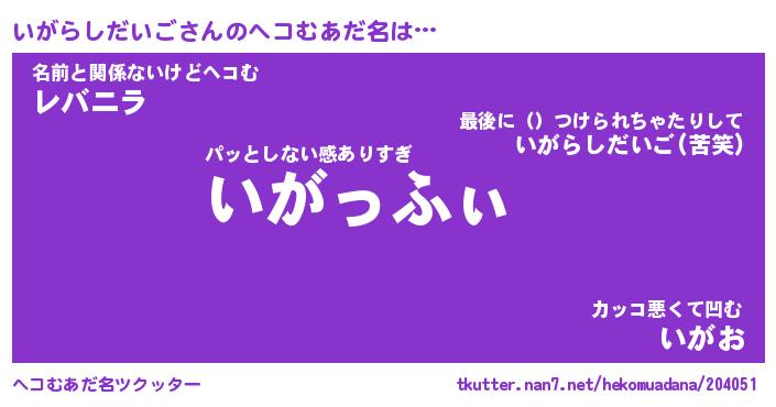 | 意味不明あだ名 | 『ペロリンいがらしだいご』 |