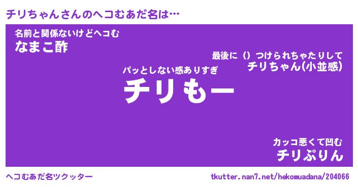 | ファンタジー風あだ名 | 『チリフェル』『エターナルチリチャンー』 |