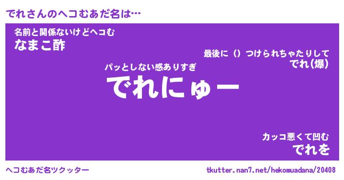 | 意味不明あだ名 | 『ペロリンでれ』『でれフォーエバー』 |