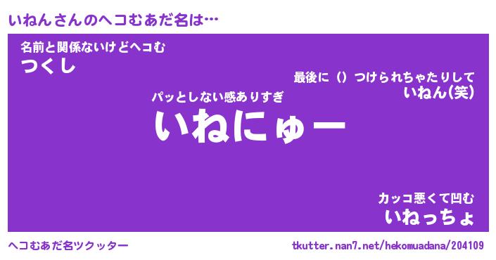 | ファンタジー風あだ名 | 『イネフェル』『エターナルイネンー』 |