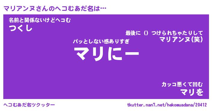 | ファンタジー風あだ名 | 『マリフェル』『エターナルマリアンヌー』 |