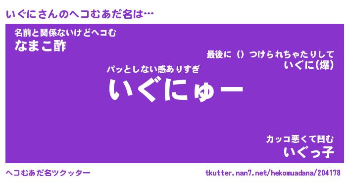 | 意味不明あだ名 | 『ペロリンいぐに』『いぐにフォーエバー』 |