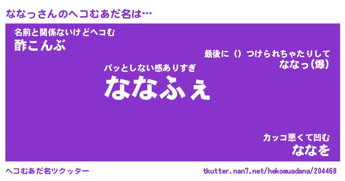 | ヒーロー風カッコイイあだ名 | 『スーパーナナッ』『ウルトラななっマン』 |