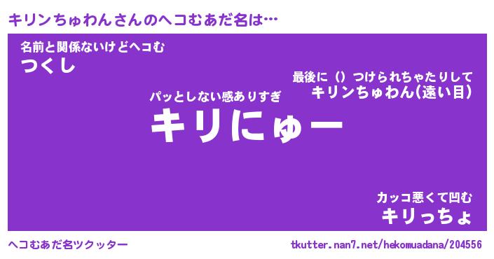 | ヒーロー風カッコイイあだ名 | 『スーパーキリンチュワン』 |