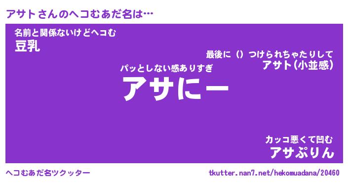 | ポケモン風あだ名 | 『アサチュウ』『アサトダネ』 |