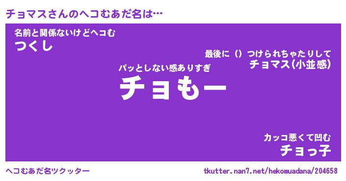 | ファンタジー風あだ名 | 『チョフェル』『エターナルチョマスー』 |