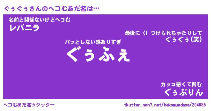 | 意味不明あだ名 | 『ペロリンぐぅぐぅ』『永久保存ぐぅぐぅ』 |
