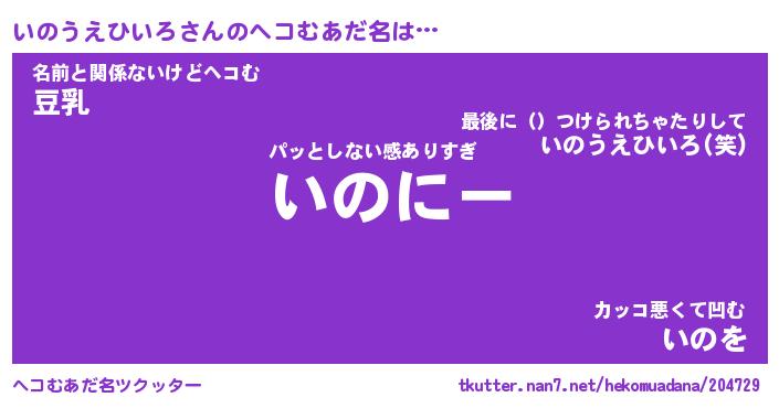 | 胡散臭い通販商品みたいなあだ名 | 『億万長者になれるブレスレット…その名も「いのうえひいろ」』 |
