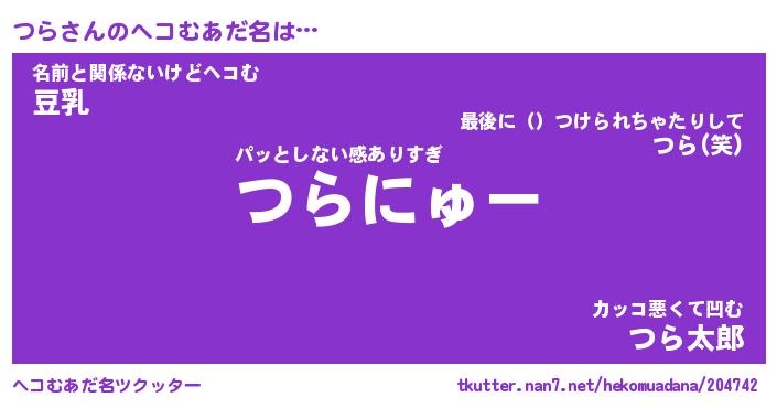 | 意味不明あだ名 | 『ペロリンつら』『つらフォーエバー』 |