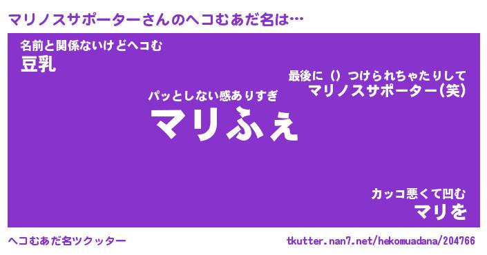 | ヒーロー風カッコイイあだ名 | 『スーパーマリノスサポーター』 |