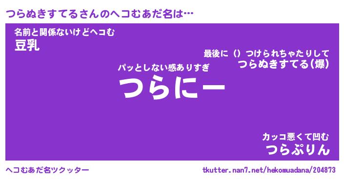| ポケモン風あだ名 | 『ツラチュウ』『ツラヌダネ』 |