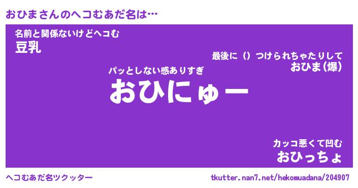 | ポケモン風あだ名 | 『オヒチュウ』『オヒマダネ』 |