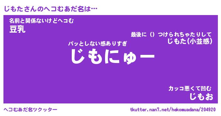 | ヒーロー風カッコイイあだ名 | 『スーパージモタ』『ウルトラじもたマン』 |