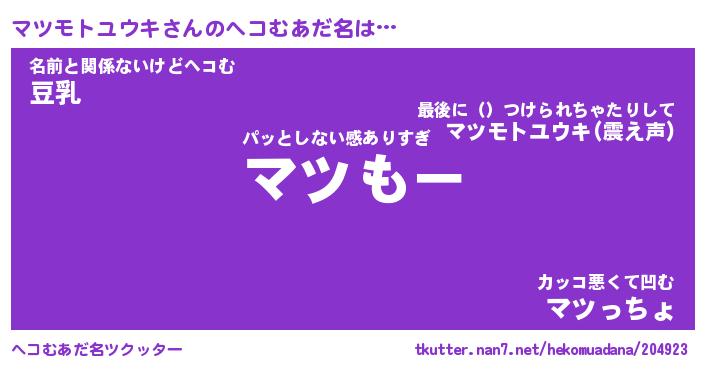 | 恥ずかしいあだ名 | 『プリティーマツモトユウキ』『マツちん』 |