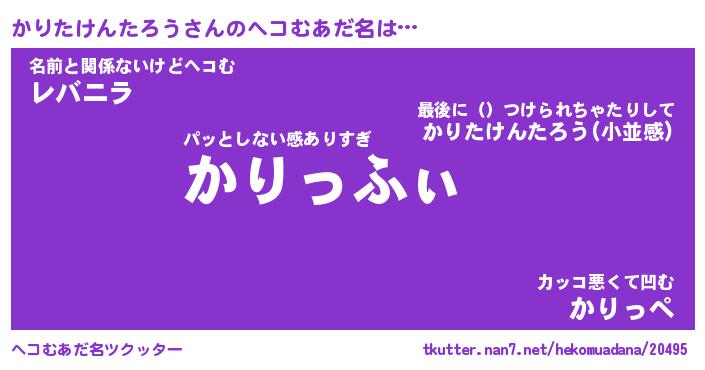 | 男性向けラノベタイトル風あだ名 | 『かりたけんたろうの憂鬱』 |