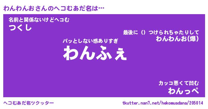 | ヒーロー風カッコイイあだ名 | 『スーパーワンワンオ』『炎刃騎士ワン』 |