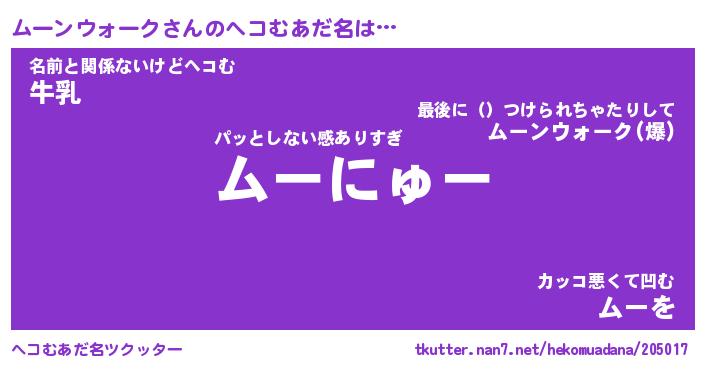 | ポケモン風あだ名 | 『ムーチュウ』『ムーンダネ』 |