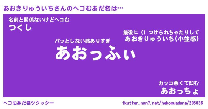 | 男性向けラノベタイトル風あだ名 | 『あおきりゅういちの憂鬱』 |