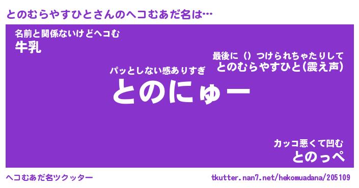 | 肩書あだ名 | 『とのむらやすひと店長』 |