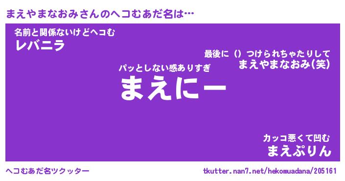 | 恥ずかしいあだ名 | 『プリティーまえやまなおみ』『まえちん』 |