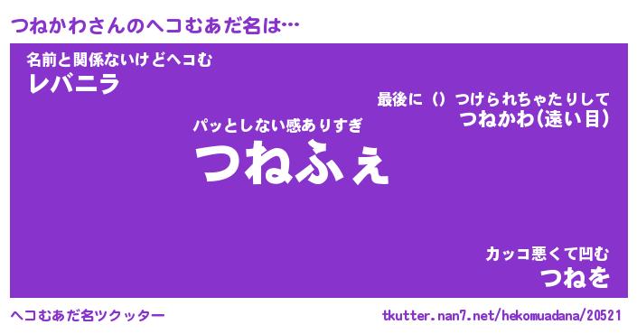 | ファンタジー風あだ名 | 『ツネフェル』『エターナルツネカワー』 |