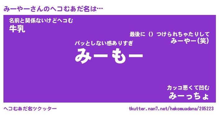 | 意味不明あだ名 | 『ペロリンみーやー』『永久保存みーやー』 |