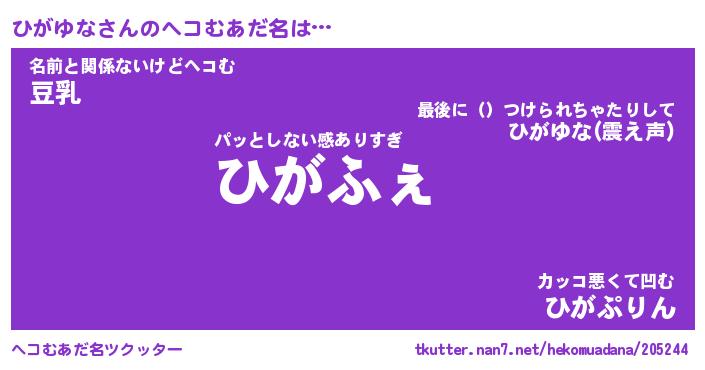 | 意味不明あだ名 | 『ペロリンひがゆな』『永久保存ひがゆな』 |