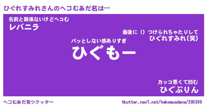 | 欧米人風あだ名 | 『マイケルひぐれすみれ』 |