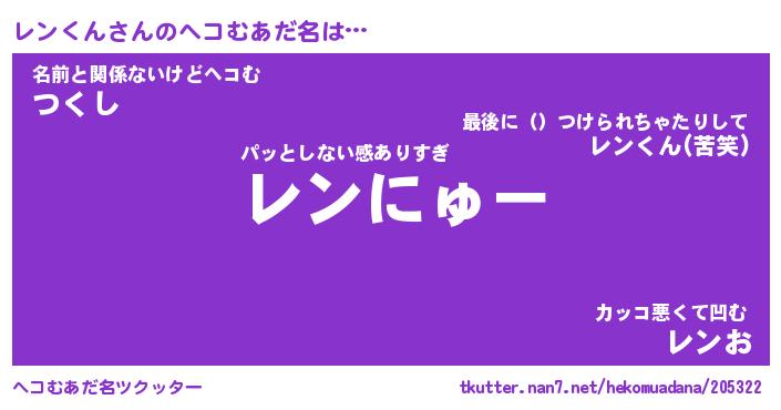 | 意味不明あだ名 | 『ペロリンレンくん』『永久保存レンくん』 |