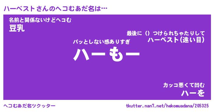 | ファンタジー風あだ名 | 『ハーフェル』『エターナルハーベストー』 |