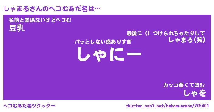 | 意味不明あだ名 | 『ペロリンしゃまる』『永久保存しゃまる』 |