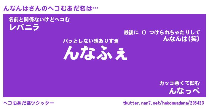 | 2回繰り返すあだ名 | 『んなんな』『んんなな』『ぬらぬら』 |