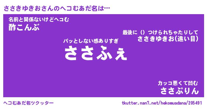 | ポケモン風あだ名 | 『ササチュウ』『ササキダネ』 |