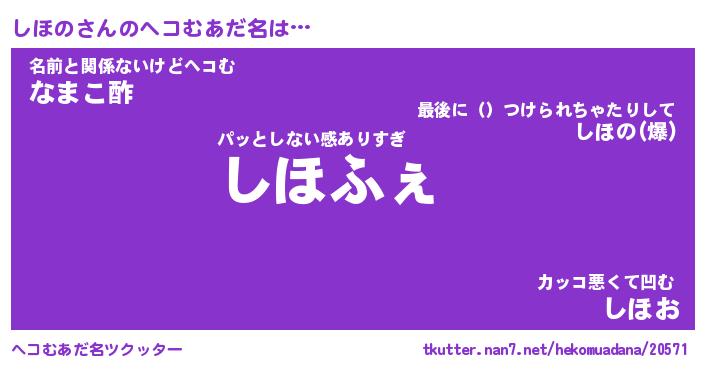 | ファンタジー風あだ名 | 『シホフェル』『エターナルシホノー』 |