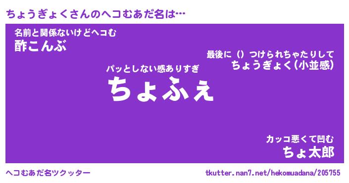 | 欧米人風あだ名 | 『マイケルちょうぎょく』 |