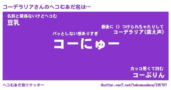 | 恥ずかしいあだ名 | 『プリティーコーデラリア』『コーっちょ』 |