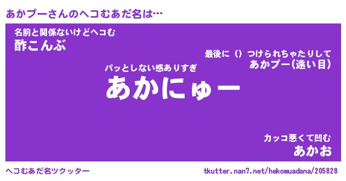 | 意味不明あだ名 | 『ペロリンあかプー』『永久保存あかプー』 |