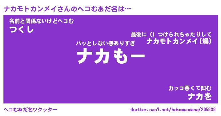| 意味不明あだ名 | 『ペロリンナカモトカンメイ』 |
