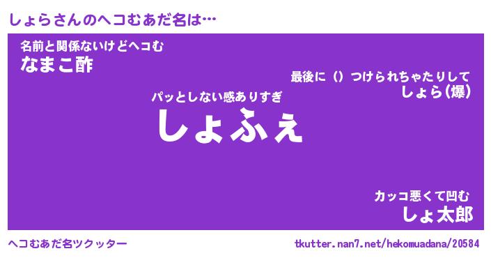 | 男性向けラノベタイトル風あだ名 | 『しょらの憂鬱』 |