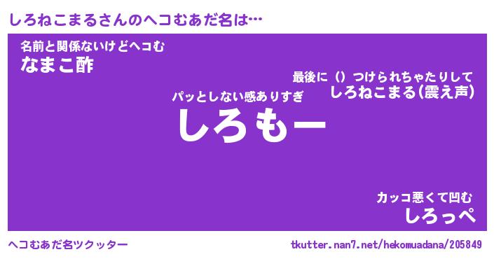 | 意味不明あだ名 | 『ペロリンしろねこまる』 |