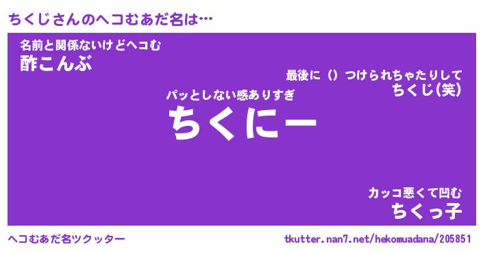 | 意味不明あだ名 | 『ペロリンちくじ』『ちくじフォーエバー』 |