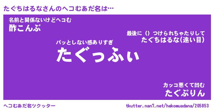 | ヒーロー風カッコイイあだ名 | 『スーパータグチハルナ』『炎刃騎士タグ』 |