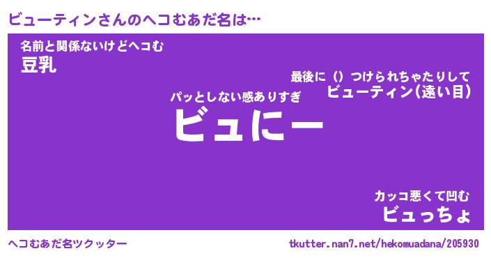 | 男性向けラノベタイトル風あだ名 | 『ビューティンの憂鬱』 |