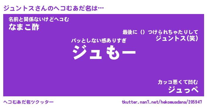| ヒーロー風カッコイイあだ名 | 『スーパージュントス』『暗黒騎士ジュ』 |