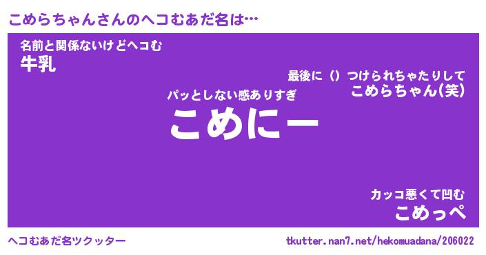 | 2回繰り返すあだ名 | 『こめこめ』『ここめめ』『ぎちぎち』 |