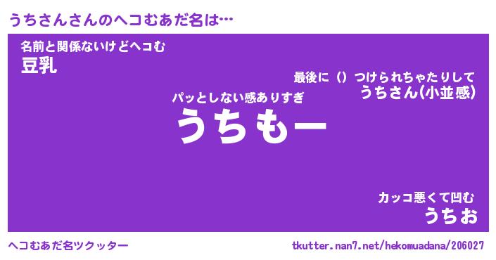 | 意味不明あだ名 | 『ペロリンうちさん』『永久保存うちさん』 |