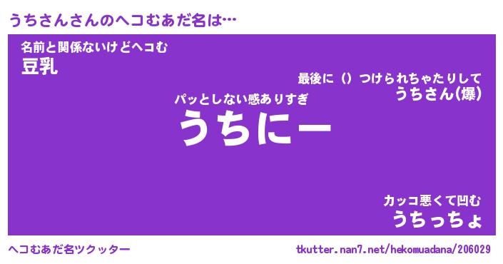 | 2回繰り返すあだ名 | 『うちうち』『ううちち』『にたにた』 |