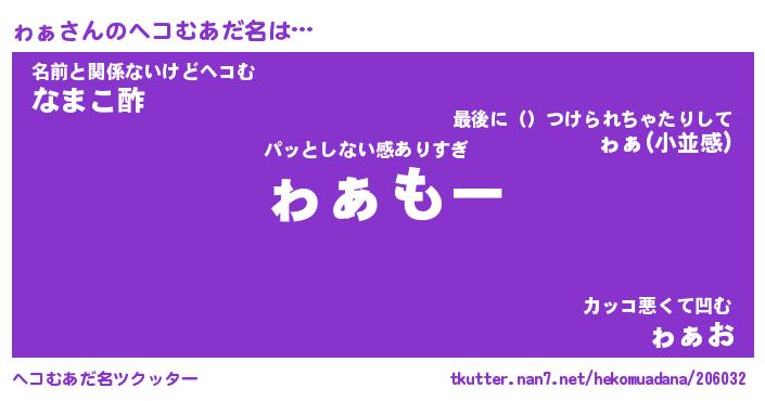 | ポケモン風あだ名 | 『ヮァチュウ』『ヮァダネ』『ヒヮァ』 |