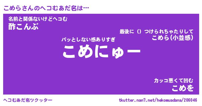 | 恥ずかしいあだ名 | 『プリティーこめら』『こめっちょ』 |