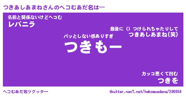 | 恥ずかしいあだ名 | 『プリティーつきあしあまね』『つきちん』 |
